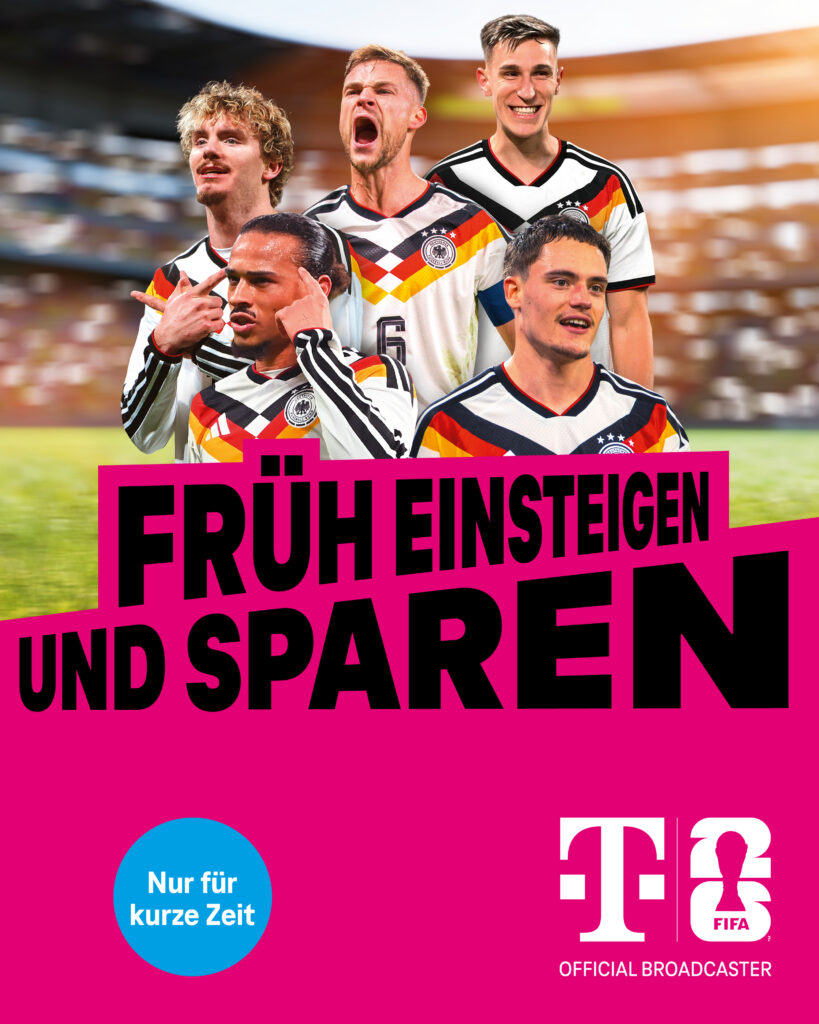 * Aktion gilt bis 30.04.2026 für MagentaTV Neukunden. MagentaTV Smart kostet in den ersten 6 Monaten 0 €/Monat, vom 7.–24. Monat 7 €/Monat und danach 11 €/Monat. Mindestvertragslaufzeit 24 Monate. MagentaTV ist über die MagentaTV App ohne zusätzliche Hardware empfangbar. Auf Wunsch kann die TV-Box MagentaTV One für 5 €/Monat zzgl. 6,95 € Versandkosten mit einer Mindestvertragslaufzeit von 12 Monaten gemietet werden. Alle Preise inkl. der gesetzlichen MwSt. Voraussetzung für die Nutzung ist eine bestehende Internetverbindung. Für die Internetverbindung gelten die Bedingungen des jeweiligen Internetanbieters. Bei Nutzung über das Mobilfunk-Datennetz erfolgt die Belastung des Datenvolumens beim jeweiligen Mobilfunk-Anbieter.