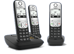 in den Farben schwarz/silber oder weiß; ohne oder nit intergriertem Anrufbeantworter; mit einem, zwei oder drei Mobilteilen